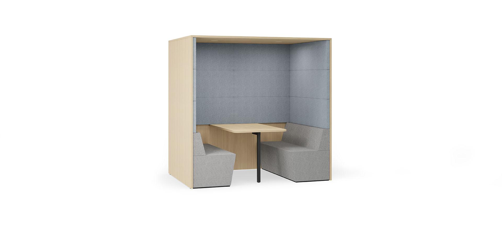 בהתאם לדרישת הלקוחות, פיתחנו פינות ישיבה אקוסטיות שהופכות לחללים חצי פרטיים ייחודיים לעבודה או פגישות אישיות.