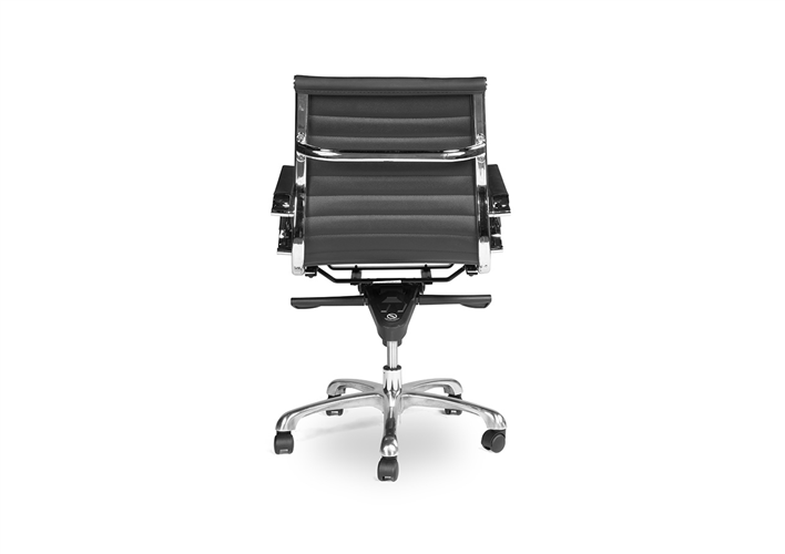 כיסא חדר ישיבות בריפוד דמוי עור ובסיס וידיות אלומיניום בעל מנגנון לכיוונון חוזק הנידנוד המותאם למשקלו וגובהו של המשתמש